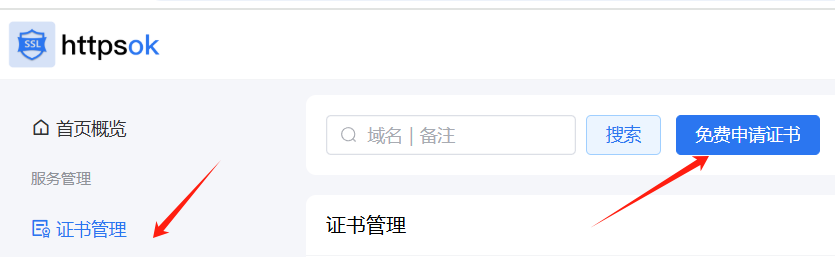 第一步:先注册账号: https://httpsok.com/p/4Ltd 要申请证书,然后DNS配置验证。当然你也可以手动下载配置证书,我喜欢这申请的通配证书。